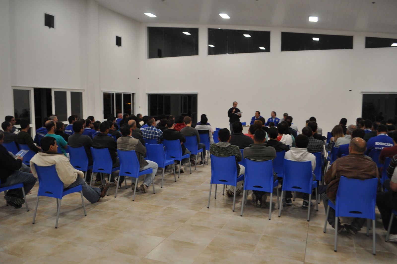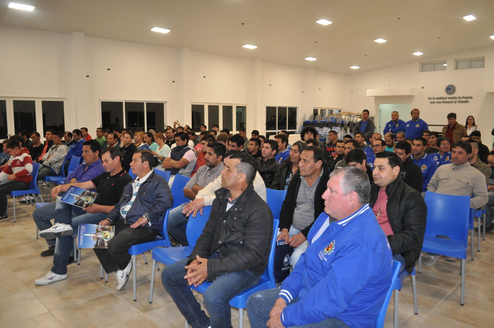 Ante una masiva concurrencia se realizó desde las 20 horas este encuentro que no solo permitió el formal desarrollo de la Asamblea, sino que además los compañeros y compañeras presentes pudieron observar los importantes avances en las obras del Complejo, fundamentalmente la terminación de obras y equipamiento de la planta alta (recepción, oficinas, sanitarios y sala de reuniones) y el importante avance de obras en el Salón de Actos y eventos que se encuentra próximo a inaugurarse.